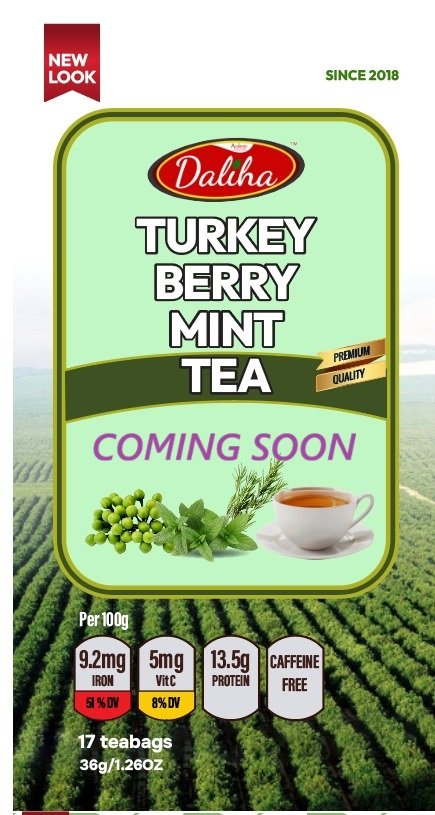 Daliha Turkey Berry Mint is an award-winning product processed from a variety of sustainably sourced and carefully selected organic turkey berry fruits and herbs that are hygienically produced to help support good nutrition. Turkey Berry is locally called ‘abedru’ in Ghana. This combination backed by research and science helps support energy and stress relief. Our Team of HACCP Certified Professionals and women farmers are passionate about giving you the best quality in every cup.